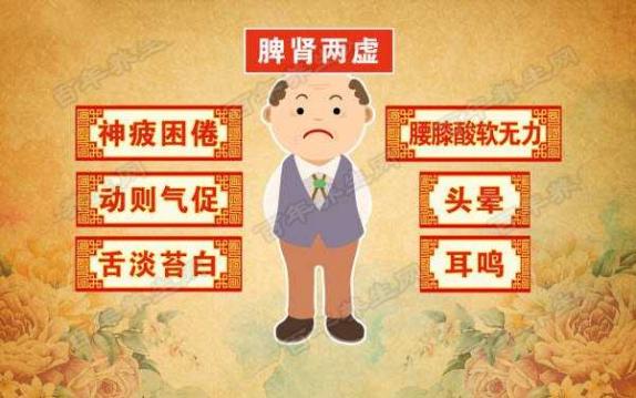 在臨床中對神疲乏力、五勞七傷、身體衰弱、陽事不舉、小便無度、眼目昏花、腰膝疼痛、兩腳麻冷、不能行走等癥狀有很好的治療和預防作用。脾腎兩虛這些癥狀跑不了!看看你中招了嗎?1、吃得少、食后腹脹2、神疲乏力、少氣懶言3、大便溏稀、四肢不溫4、想法少、頭暈眼花5、尿頻尿急、入睡困難6、自汗、焦慮、煩躁7、健忘、注意力不集中8、舌體胖大,舌苔淡白,舌邊有齒痕。