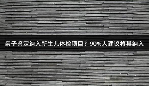 建議把親子鑒定納人,新生兒體檢項目。把新生兒親子鑒定納入新生兒體檢項目。這意味著,想要為新生兒報戶,就必須進行親子鑒定。看來選擇新生兒親子鑒定的人越來越多,可能會逐步形成共識。親子鑒定已成...