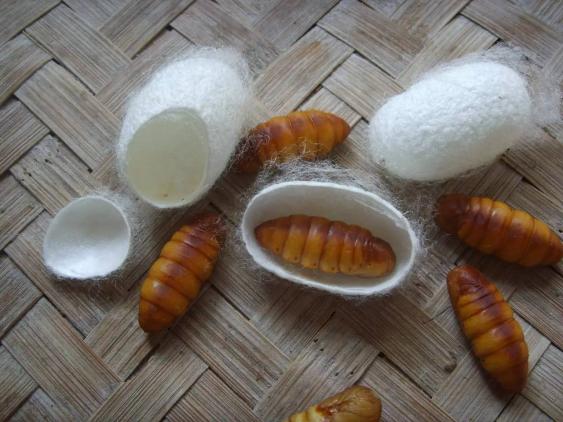剪個口把里面的活的蠶蛹取出,也可以保存蠶絲的一個繭子的方法。蝗蟲,蠶蛹都是貴重的能保存的動物性蛋白質(zhì)。像我手里就是烘干了,它里面的蠶蛹已經(jīng)死掉了。蠶蛹煎餅可以作為主食或零食食用,非常美味。