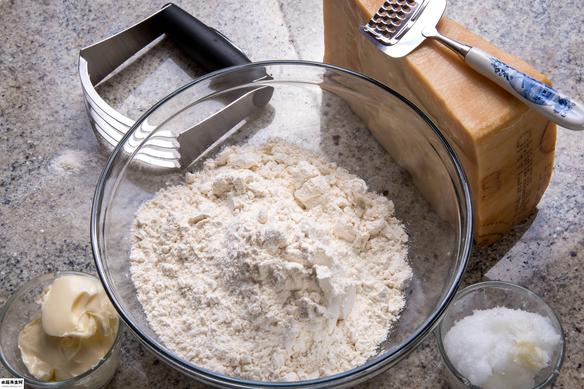 刷油,撒面粉,用手指在中間按一個小坑。